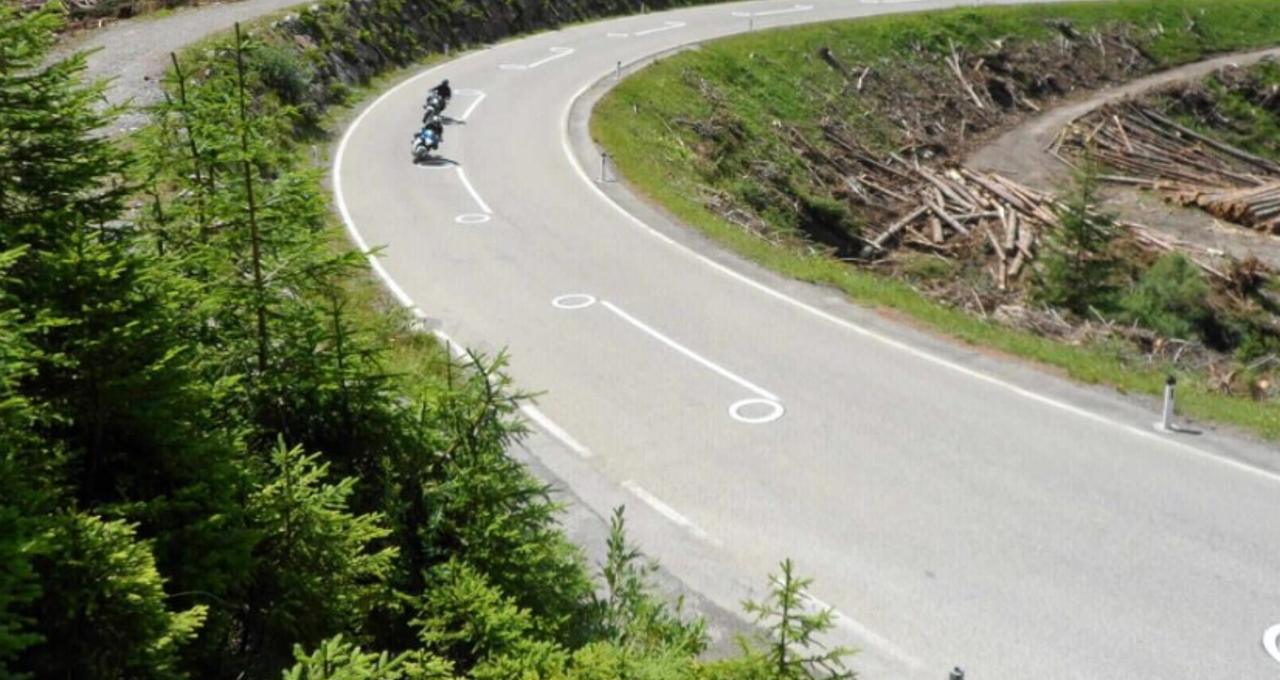 U brojnim europskim zemljama pojavile su se nove prometne oznake u obliku bijelih krugova iscrtani reflektirajućom bojom protiv klizanja. Ove oznake, smještene uz središnju crtu kolnika, imaju ključnu ulogu u povećanju sigurnosti motociklista. Njihova svrha je pomoći vozačima da odaberu optimalnu putanju kroz zavoje, smanjujući rizik od prebliskog približavanja središnjoj liniji i potencijalnih sudara s nadolazećim vozilima.