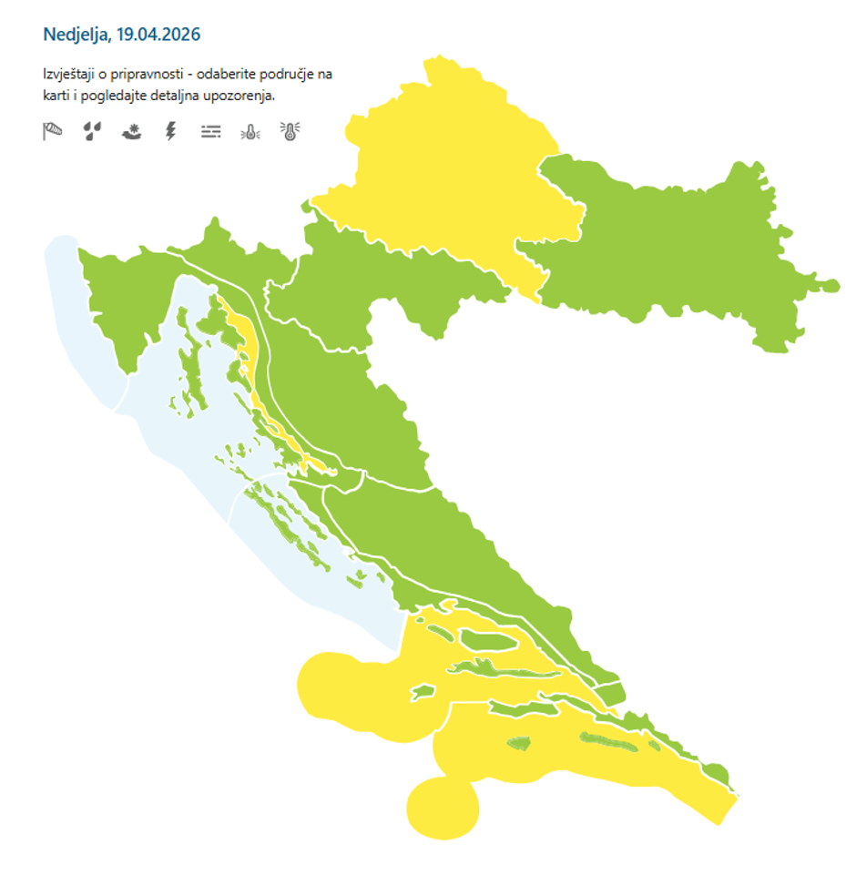 U Dalmaciji će nedjelja započeti stabilno i sunčano. U unutrašnjosti temperature mogu doseći i do 25 °C, dok će na obali jutarnje vrijednosti biti oko 14 °C.